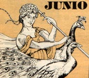 Junio, sexto mes de nuestro calendario, estaba dedicado, según el poeta Ovidio, a la diosa JUNO esposa de Júpiter, protectora de los matrimonios y de los nacimientos. De hecho, los romanos le dedicaban en este mes un importante festival que comenzaba en su día primero.