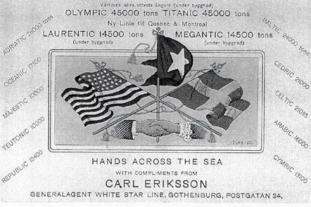 El lujoso O1impic aparece en el anuncio y se da la casualidad que fue el primero de la serie de tres, con el Olimpic el primero, segundo el Titanic. En el Titanic murieron veinte españoles; de estos veinte, 19 viajaban para Cuba. El 20º, en viaje de luna de miel.
